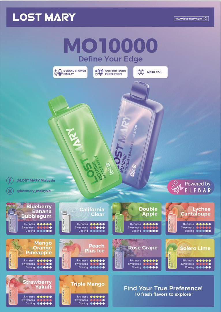 JUES Pulse 15000 PuffsRM28.00 MYR–RM39.00 MYRELFBAR Raya D1 13000 PuffsRM41.00 MYRRELX Creator 22000 PuffsRM15.00 MYR–RM33.00 MYRELFBAR Swap 25000 Prefilled PodRM30.00 MYR–RM35.00 MYRELFBAR Ice King Summer Edition 40000 PuffsRM48.00 MYR RM50.00 MYRELFBAR Raya D2 Disposable PodRM42.50 MYR–RM44.00 MYRJUES Slick 6000 Puffs Disposable PodRM29.00 MYRRELX Crush Pocket 6000 PuffsRM29.00 MYRRELX Spin Mini LuxRM12.00 MYR–RM25.00 MYRLANA Pen 2000 PuffsRM19.99 MYR RM22.00 MYRELF BAR Ice King 30000 PuffsRM48.00 MYR RM50.00 MYRELFBAR Snap 14000 Puffs Prefilled Pod elf barRM30.00 MYR–RM49.00 MYRLost Mary CD 12000 PuffsRM28.00 MYR–RM37.00 MYRAladdin Pro ZOORO 18000 PuffsRM15.00 MYR–RM43.00 MYRLost Mary MO 10000 PuffsRM35.90 MYR RM39.00 MYRFOVS Flo 12000 Puffs Disposable PodRM38.90 MYRLost Mary OS18000 Puffs Disposable PodRM42.00 MYR RM43.00 MYRLANA VAPE Trend 6000 PuffsRM30.00 MYR RM35.00 MYRRELX Crush Pocket 4000RM23.80 MYRFOVS Crystalz 9000RM32.00 MYR RM33.00 MYRJUES Nova 10000 PuffsRM36.90 MYR RM38.00 MYRRELX Creator 15000 PuffsRM29.00 MYR–RM40.00 MYRELFBAR RAYA Prime 3000 Elf Bar RAYYA PRYMERM19.90 MYRSnow Wolf LEGEND 25000 PuffsRM42.90 MYR RM45.00 MYRSnow Wolf Smart IC 15000RM38.00 MYR RM40.00 MYRELF BAR Sweet King 30000 PuffsRM48.00 MYR RM50.00 MYRNasty Bar DR12ki 12000 PuffsRM36.90 MYR RM38.00 MYRELFBAR Bright 6000 Puffs Elf BarRM29.00 MYR RM30.00 MYRHastag 6000 Puffs Disposable PodRM25.00 MYRJUES Lite Disposable PodRM15.00 MYRRELX Stick 2000RM17.90 MYRSP2S Air Mini 5000 PuffsRM28.00 MYRMOTI Play Bar 10000 PuffsRM38.00 MYR RM40.00 MYRRed Magic Pocket 2000 Puffs Disposable PodRM17.90 MYRSP2 Once 2000 PuffsRM19.00 MYREST Bar by Lana Vape 10000 PuffsRM36.90 MYR RM39.00 MYR