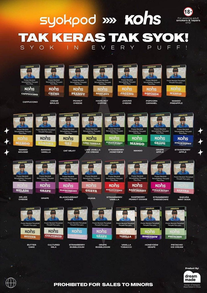 Krista Salt Nic by Kardinal KristalRM22.80 MYRRELX Creator Mini PodRM17.00 MYRProject Mint Salt Nic 15mlRM25.00 MYRKOHS Syokpod CartridgeRM12.00 MYRRELX Crush Pocket 4000RM23.80 MYRASDF OFFGRID Reload Cartridge / Unplug E-Liquid 15MLRM15.00 MYR–RM25.00 MYRELFBAR Ice King Summer Edition 40000 PuffsRM48.00 MYR RM50.00 MYRCellera Zero By SERAPODRM46.00 MYRAladdin Pro Max Pod KitRM70.00 MYRUwell Caliburn G4 Mini Pod KitRM55.00 MYR RM59.00 MYRUwell Caliburn G4 Pod KitRM95.00 MYR RM99.00 MYRELFBAR Swap 25000 Prefilled PodRM30.00 MYR–RM35.00 MYRELF BAR Sweet King 30000 PuffsRM48.00 MYR RM50.00 MYRSP2S Air Mini 5000 PuffsRM28.00 MYRdotPod Plus Replacement Pods by dotModRM31.90 MYRdotPod Plus Device by dotModRM125.00 MYRRELX E-Liquid Salt Nic 10mlRM15.00 MYRSP2 ZUOS Starter KitRM99.00 MYRELF BAR Ice King 30000 PuffsRM48.00 MYR RM50.00 MYRRELX Spin Mini LuxRM12.00 MYR–RM25.00 MYRFOVS Flo 12000 Puffs Disposable PodRM38.90 MYRRELX Creator 22000 PuffsRM15.00 MYR–RM33.00 MYRNEVOKS FEELIN AQ Pod KitRM79.00 MYR RM85.00 MYRAladdin Pro ZOORO 18000 PuffsRM15.00 MYR–RM43.00 MYRJUES Pulse 15000 PuffsRM28.00 MYR–RM38.00 MYRSnow Wolf LEGEND 25000 PuffsRM42.90 MYR RM45.00 MYRELFBAR Raya D2 Disposable PodRM42.50 MYR–RM44.00 MYRNevoks Feelin XR Pro Pod KitRM110.00 MYRJUES Slick 6000 Puffs Disposable PodRM29.00 MYRLost Mary OS18000 Puffs Disposable PodRM42.00 MYR RM43.00 MYRRELX Creator 15000 PuffsRM29.00 MYR–RM40.00 MYRELFBAR Snap 14000 Puffs Prefilled Pod elf barRM30.00 MYR–RM49.00 MYRAspire Cloudflask X Pod KitRM158.00 MYR RM160.00 MYRNEVOKS FEELIN AR Pod KitRM39.90 MYR RM40.00 MYRELFBAR Bright 6000 Puffs Elf BarRM29.00 MYR RM30.00 MYRSnow Wolf Smart IC 15000RM38.00 MYR RM40.00 MYRDotswitch Nano by DotRM58.00 MYR RM60.00 MYRRELX Crush Pocket 6000 PuffsRM29.00 MYRNevoks Feelin AX Pod KitRM80.00 MYR RM85.00 MYRLANA VAPE Trend 6000 PuffsRM30.00 MYR RM35.00 MYRJUES Nova 10000 PuffsRM36.90 MYR RM38.00 MYRNasty Bar DR12ki 12000 PuffsRM36.90 MYR RM38.00 MYRLost Mary CD 12000 PuffsRM28.00 MYR–RM37.00 MYRJUES Lite Disposable PodRM15.00 MYRSP2 Once 2000 PuffsRM19.00 MYRRincoe Manto Nano Pro KitRM89.00 MYRFOVS Crystalz 9000RM32.00 MYR RM33.00 MYREST Bar by Lana Vape 10000 PuffsRM36.90 MYR RM39.00 MYRNevoks Feelin 2 CartridgeRM16.90 MYR–RM29.00 MYRNevoks Feelin 2 Pod KitRM55.00 MYR RM58.00 MYR